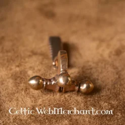 En håndgjort romersk armbrøst fibula. Denne romerske fibula er baseret på en original fra det 2. århundrede e.Kr.. Armbrøst fibulaer som denne blev brugt i hele det romerske imperium mellem 1. og 3. årh. E.Kr. Denne fibula er fremstillet af bronze og måler 1,5 x 3 x 4,6 cm. Det vejer ca.. 13,7 gram