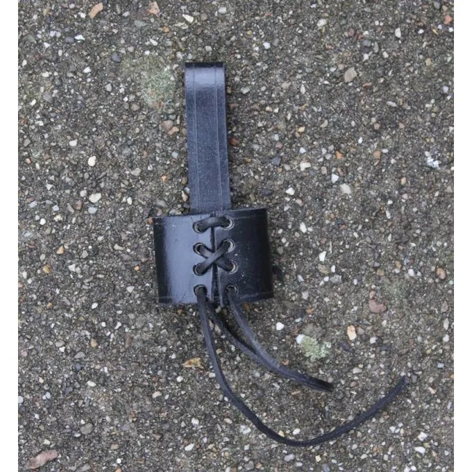En dolk kan sættes i denne holder. Den har en løkke til at fastgøre den til bæltet og er lavet af 3,5 mm tykt læder.