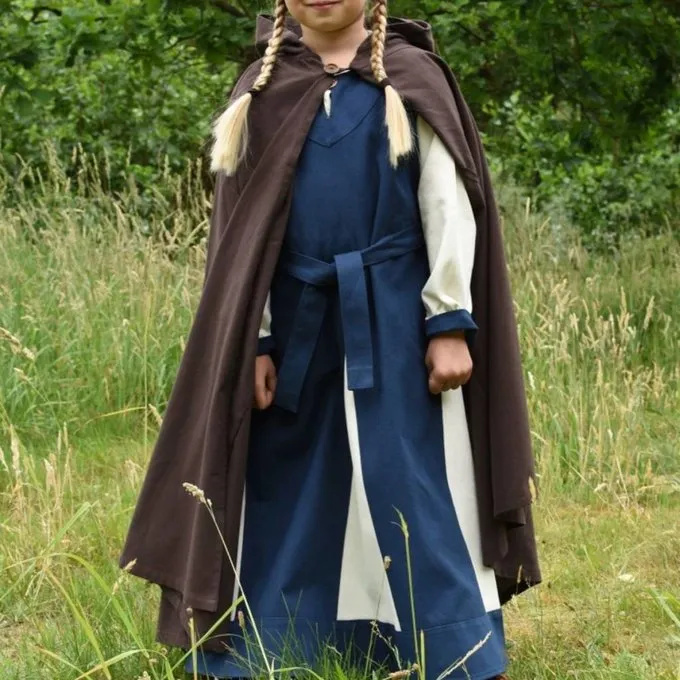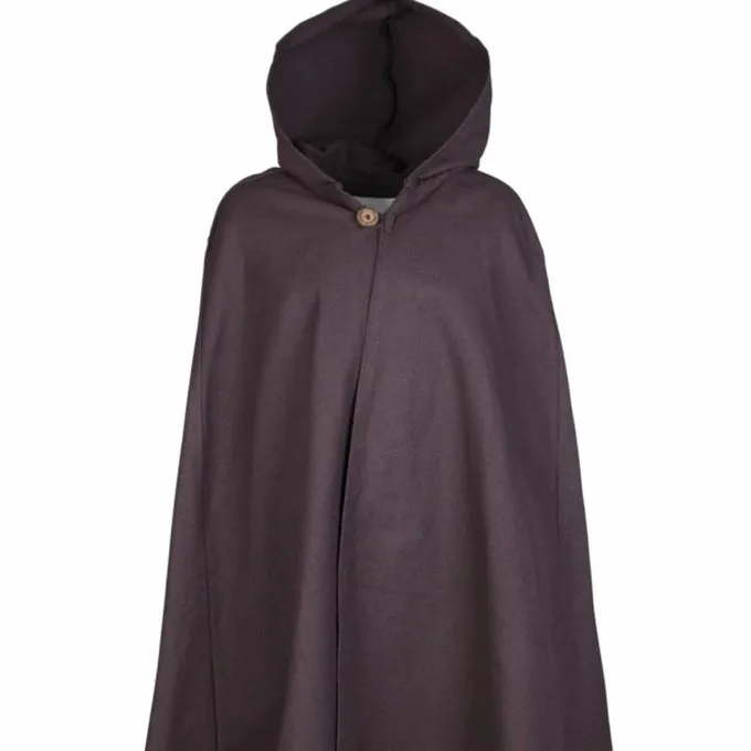 Cloaks som denne blev båret i middelalderen og renæssancen. Originaler kan ses i illuminerede manuskripter og på blyindfattede ruder. Pelsen er lavet af bomuld og egnet til forår, sommer og tidligt efterår. Du kan fastgøre det med et træ Knap og det har en stor hætte.