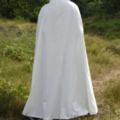 Cloaks som denne blev båret i middelalderen og renæssancen. Originaler kan ses i illuminerede manuskripter og på blyindfattede ruder. Den kappe er lavet af bomuld og egnet til forår, sommer og tidligt efterår. Kappen har en stor hætte, og du kan fastgøre det med et træ Knap. Med koldere vejr kan du bære en chaperon for ekstra varme. Den kappe kan bæres af både mænd og kvinder. Det er det perfekte supplement til middelalderlige LARP, Cosplay og re-enactment kostumer.