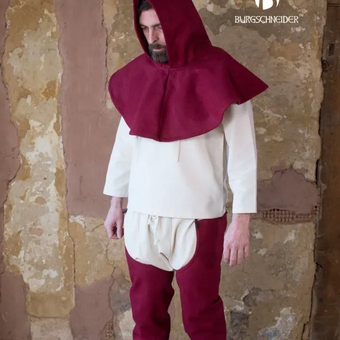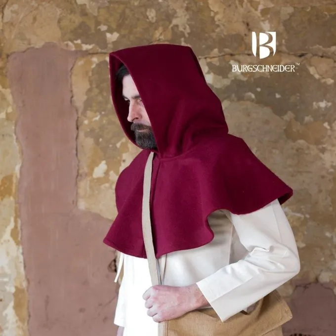 Denne chaperon er lavet efter flere 14. og 15. århundrede manuskripter, pen tegninger og skulpturer. Chaperons som denne blev båret hele feudale Europa. De beskytter hovedet, nakke og skuldre fra regn og kulde. Chaperoner blev båret af mennesker fra alle klasser i samfundet og begge køn.