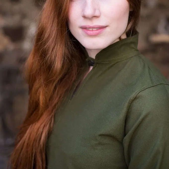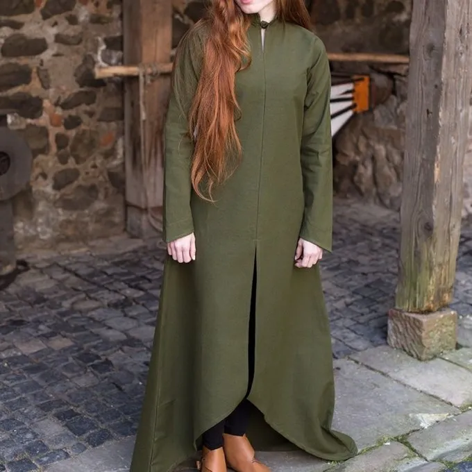 Den kjole Ranwen er et alsidigt design, en reel blikfang. Kjolen har en krave, som du kan lukke med en Knap. Bagsiden af skørtet når til jorden og foran det ender højere oppe. Den forreste har en høj split, som gør designet meget elegant. Et spændende design, som du kan bære hver for sig, men kan også kombinere det med et korset, en nederdel, en kappe eller en overgarment. En beklædningsgenstand, der skaber smukke LARP, Cosplay og festival outfits.
