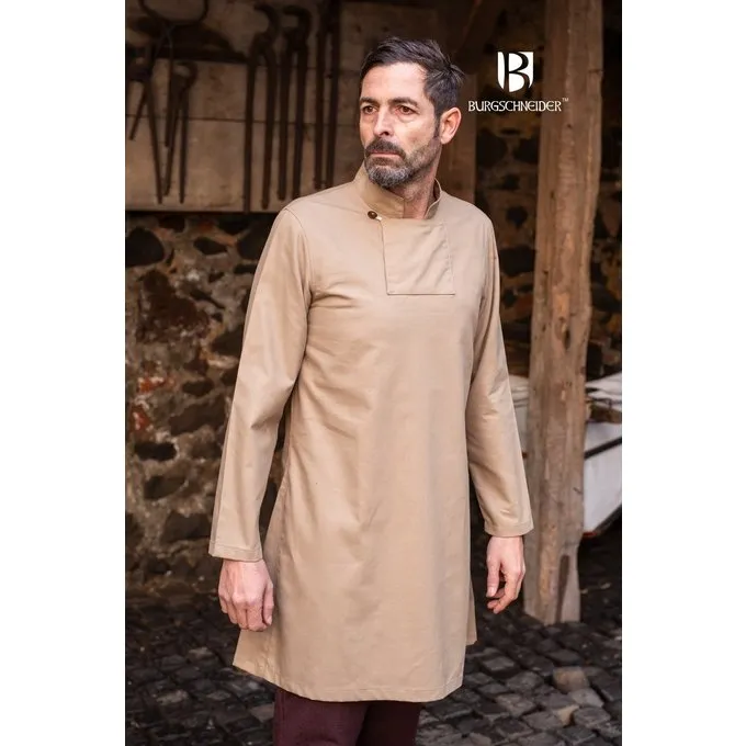 Denne tunika er baseret på tøjfragmenter, der er udgravet i Skjoldehamm, Norge og Kragelund, Danmark. Det er lavet af bomuld og kan bæres separat eller under en anden beklædningsgenstand på koldere dage. Den markante firkantede krave, der er typisk for disse udgravede fragmenter, kan fastgøres med en knap.