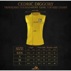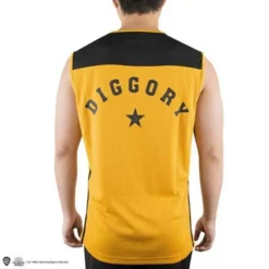 Ideel til cosplaying af Cedric Diggory! Men også bare dejlig at have på hver dag eller under sport. Denne tanktop er lavet i Hufflepuff farver. Forsiden har et broderet Hogwarts-logo, og bagpå står der: Diggory.