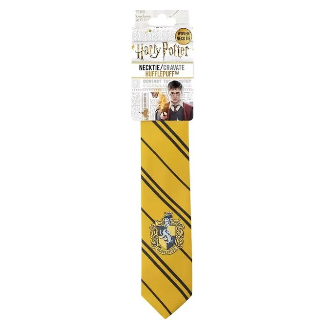 Perfekt til en Harry Potter cosplay -kostume! Dette slips er en officiel kopi af de bånd, som Hogwarts -studerende bærer i Harry Potter -filmene. Kombiner det med en af ​​vores Harry Potter -klæder og Hogwarts -studerende trøjer til et komplet cosplay. Hvis du har brug for et slips til en særlig lejlighed, er dette slips også sjovere end standarddesignene. Dette slips er lavet i Hufflepuff -farverne og har et Hufflepuff -logo på fronten.