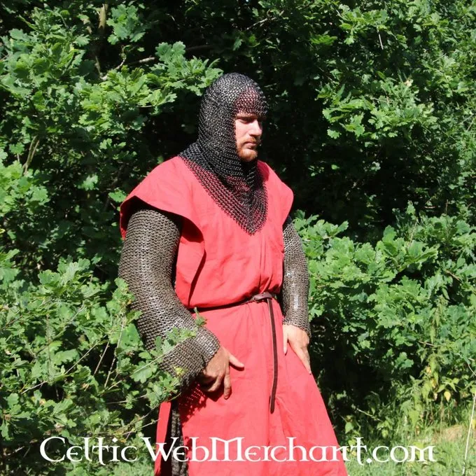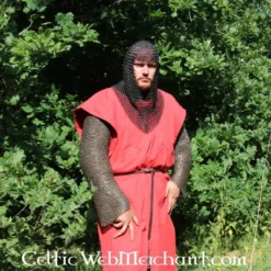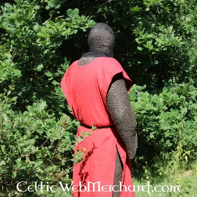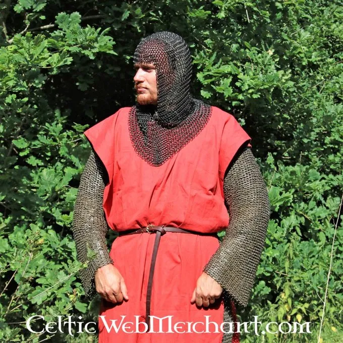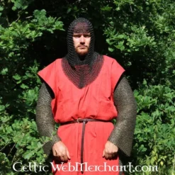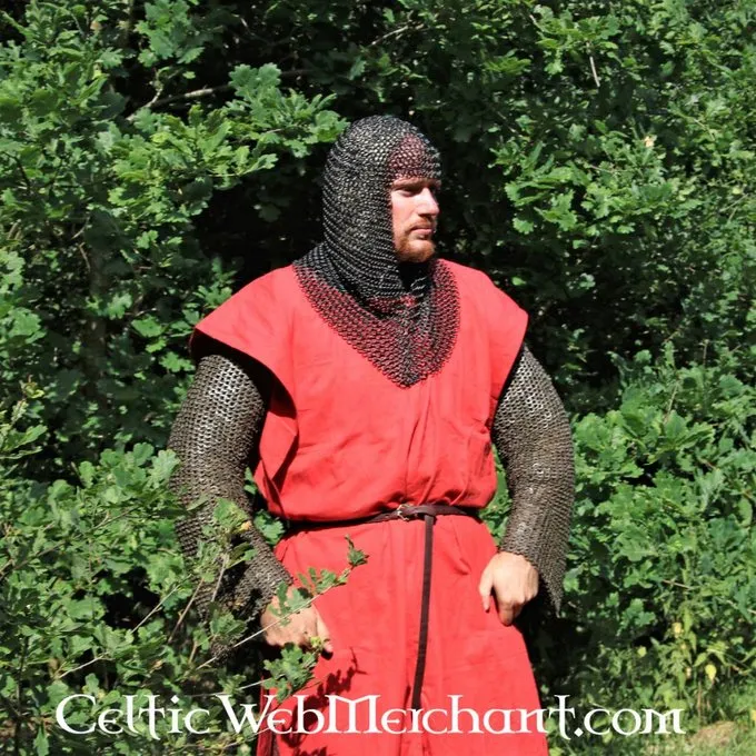 Denne coif er fremstillet af 1,6 mm tyk bronzed gathered Runde ringe med en indre diameter på 9 mm. De er vævet fire i én. Den coif har en trekantet visir og vejer ca.. 2,1 kg