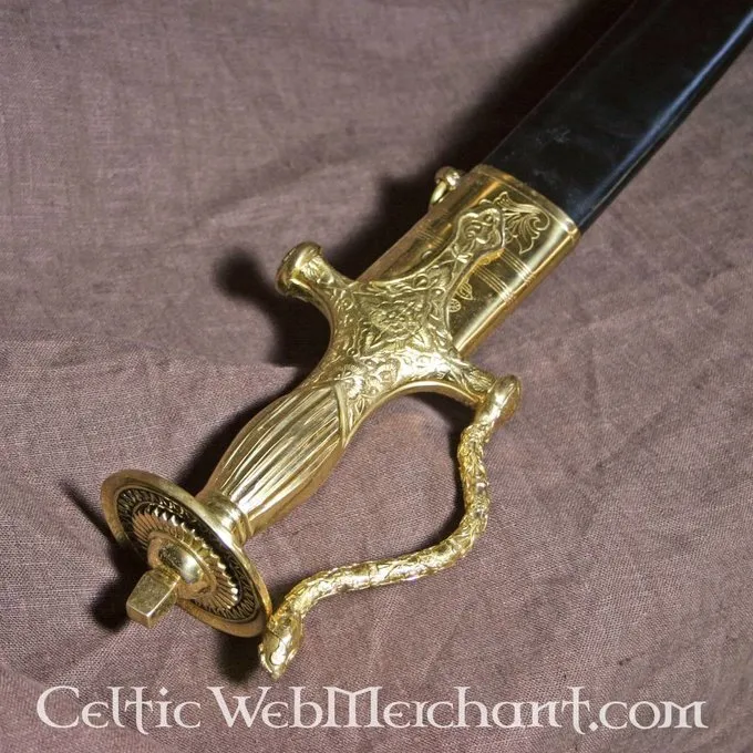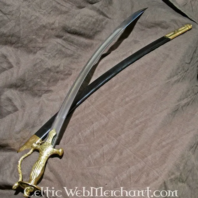 Produkt detaljer: Længde: 86 cm / Klingelængde: 73 cm / Grebets Længde: 13 cm / Vægt: 1077 g / Ståltype: 1090 kulstofstål / Edge: Skarp / Tangkonstruktion: Konstruktion with fuldt tang / Knap: Nittet / Grebets omvikling: Messing / based on a historisk ori