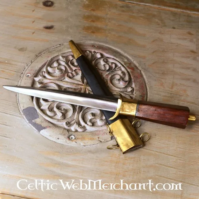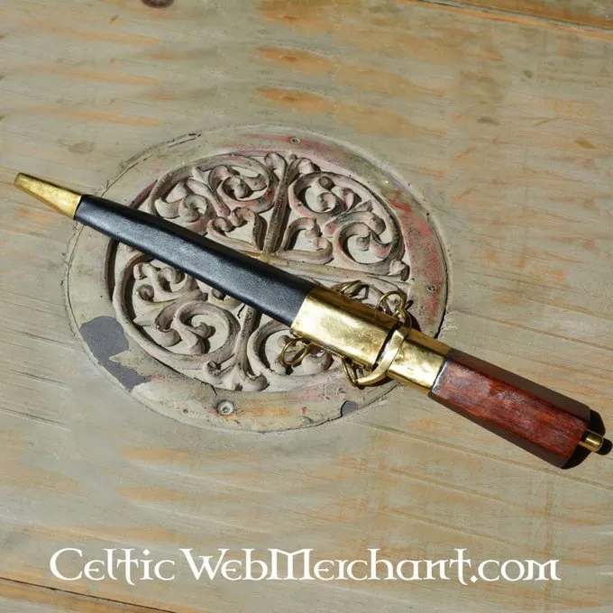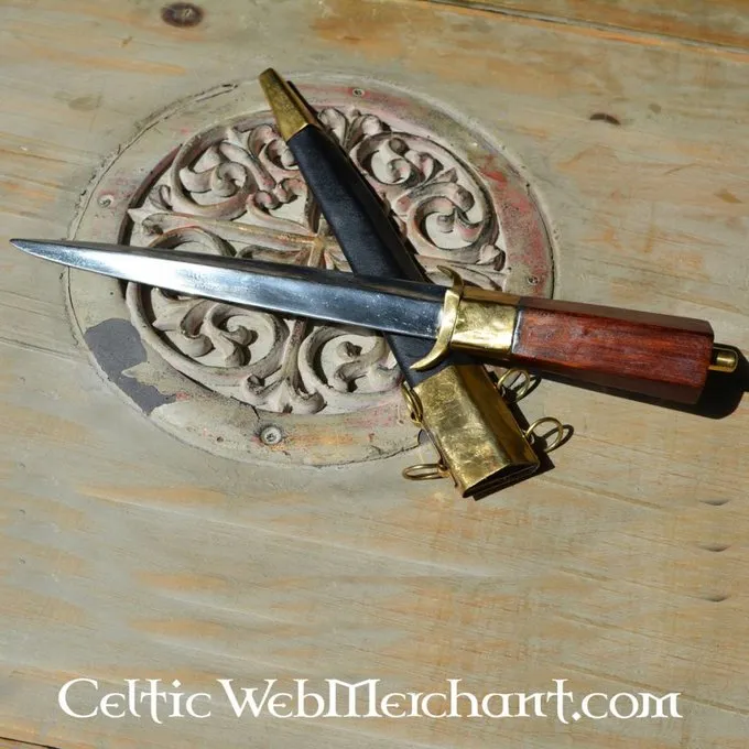Denne replika har en trekantet klinge. Håndtaget er lavet af træ beklædt med læder. Både skede og Dolk har messing dele. Den Dolk har en længde på 33 cm og det har en klingelængde på 19 cm.