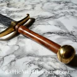 Detaljer / Materiale: DA45 fjederstål, træ / Total længde: 89 cm / Knap: skruet / Fuld tang / Klingelængde: 92,5 cm / Kant: halvskarpt / Baseret på historisk original / Vægt: 1670 gram /