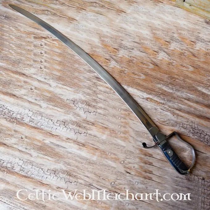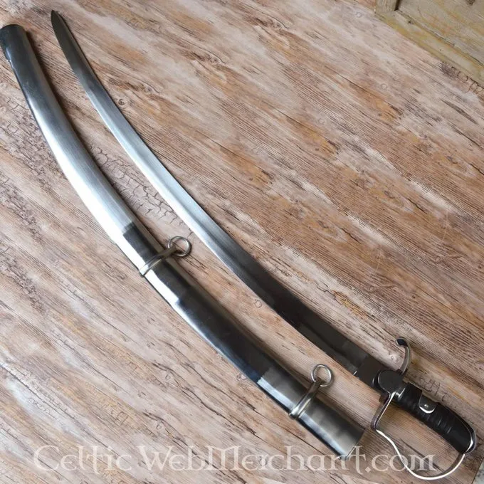 Denne sabel er i stil med et våben fra Napoleontic æra. Det har en stål skede med to ringe. Dens længde er 100 cm, og det har en klinge på 85 cm