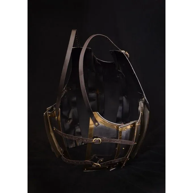 Dette er en rekonstruktion baseret på brystplade fra Churburg rustning fra omkring 1360. Den brestplate består af ni stålplader, som er forbundet til hinanden via skindbånd på indersiden. Det er dekoreret med messingbånd.