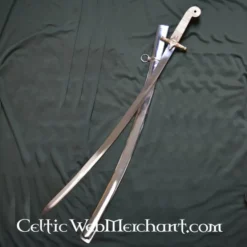 Detaljer / Materiale: DA45 kulstofstål / Samlet længde: 98 cm / Klingelængde: 81 cm / Halvskarpt / Knap: skruet / Fuld tang / Vægt: 868 gram / baseret på historiske original /
