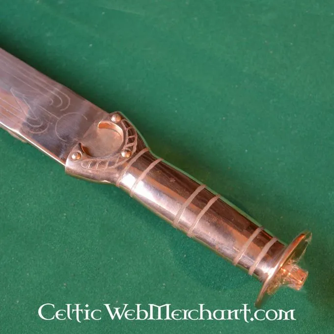 Produkt detaljer: Længde: 71,5 cm / Klingelængde: 58 cm / Grebets Længde: 13,5 cm / Vægt: 1450 g / Ståltype: Bronze / Kant: Halvskarpt / Tangkonstruktion: konstruktion with fuldt tang inclusief Knap / Grebets omvikling: Bronze / based on da historisk orig