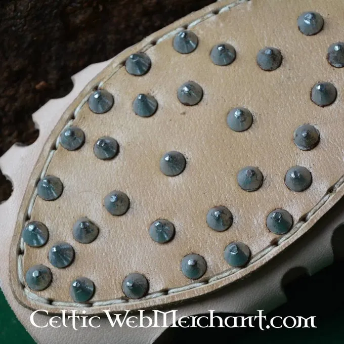Produkt detaljer: Materiale: læder / læder Tykkelse: 2 mm / sål: hærdet læder, hobnails / Størrelser: 38-46 / Fastgørelse metode: snorer / based on da historisk original: ja