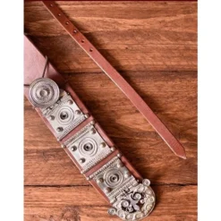 Produkt detaljer: Længde: Hoftemål 97-130 cm / Materiale: Læder, forsølvet Messing / based on da historisk original: Ja /