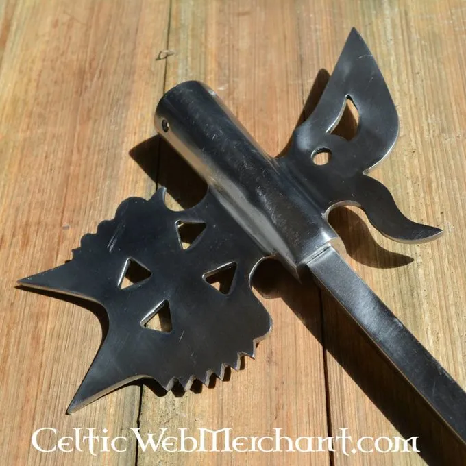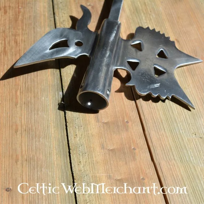 Dette dekorative kopi er lavet af 3,5 mm tyk stål. Pointen er 15 mm tyk. Længden af hellebard er 56,5 cm, og dens bredde er 23 cm. Den er velegnet til en aksel med en Tykkelse ca. 3,2 cm.
