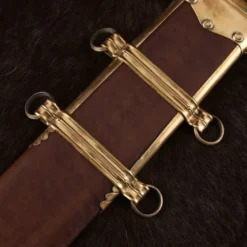 Denne luksuriøse gladius er et aktiv for samlere af klassiske våben og for romerske re-enactors. Det har en klinge af DA45 stål og en fæstet af ben og træ med en skruet knop. Den leveres med en læder skede med en træ kerne. Skeden er smukt dekoreret med messingbeslag og har messing ringe, så du kan hænge det på dit bælte.