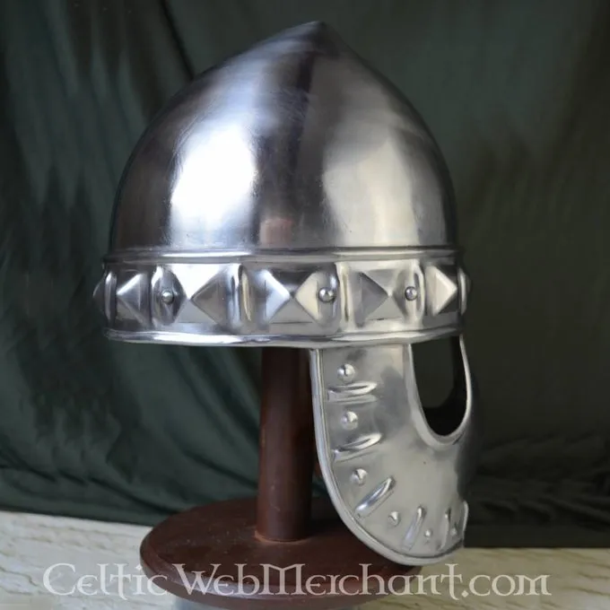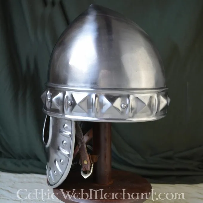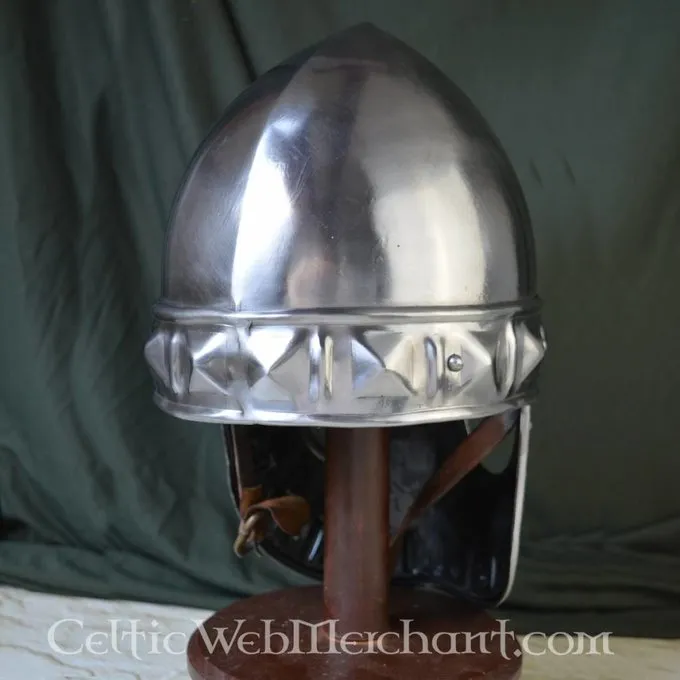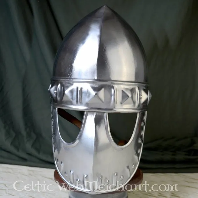 Dette er en kopi af en hjelm, der er afbildet i kirken St. Johannes og Paulus i Spoleto fra ca.. 1170. Hjelme som denne blev indført af normannerne i Italien.