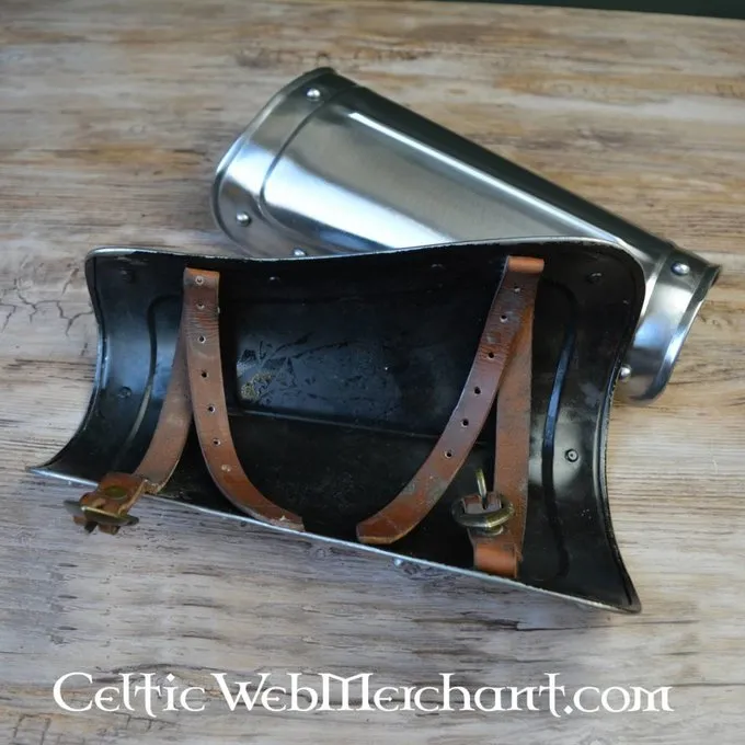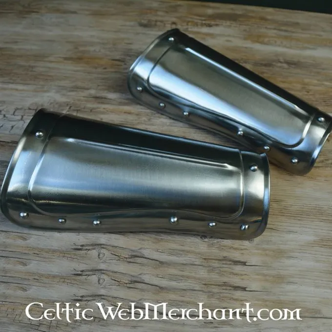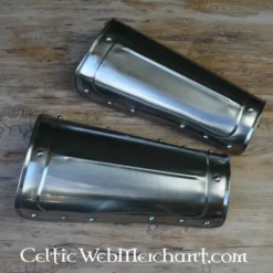 Disse armskinner er fremstillet af 1,3 mm tyk poleret stål og har en mid ribbe og foldede kanter.