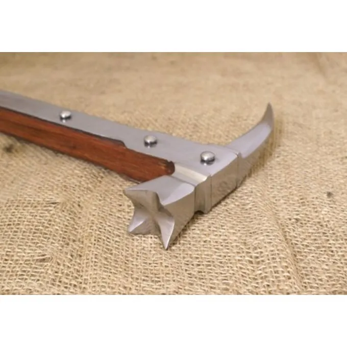Krigshammere ligesom dette blev primært brugt af ryttere og er opkaldt efter deres typiske form. Bagsiden ender i et punkt (ravn næb). Det blev brugt som et stangvåben og percussion våben. Den krigshammer har en længde på 67 cm og dens bredde er 18 cm. Vægt ca. 700 gram.
