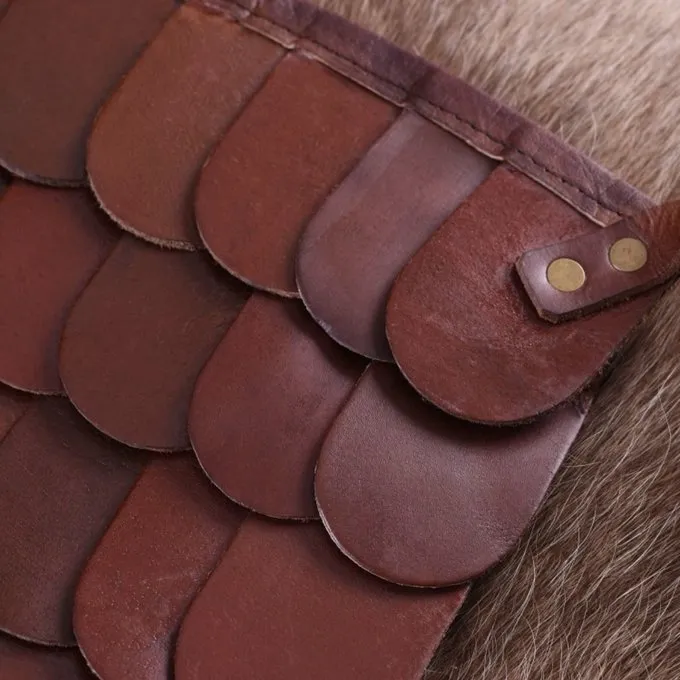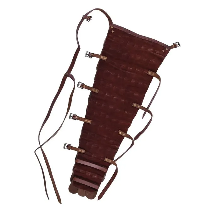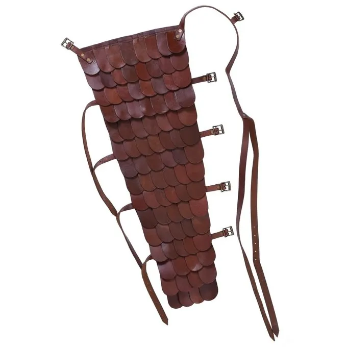 En høj kvalitet læder skaleret Armguard for re-enactment, LARP eller Cosplay af en romersk gladiator. Den Manica er en segmenteret arm beskyttelse, der kunne være lavet af forskellige materialer, såsom stål, læder eller bronze, som blev båret på den ene arm af gladiator. Originale billeder af manica kan ses på romerske mosaikker, grave og sten. Det indre af manica er lavet af blødt ruskind for ekstra komfort. Skalaerne sikrer, at manica er fleksibel og bevæger sig med armen. Den har to store stropper til fastspændingen det til skulderen og på tværs af brystet. Derudover bagsiden har fire stropper, til at fastgøre manica omkring din arm da den har stropper til din hule hånd. Det vil forblive på plads under intensive kampe.