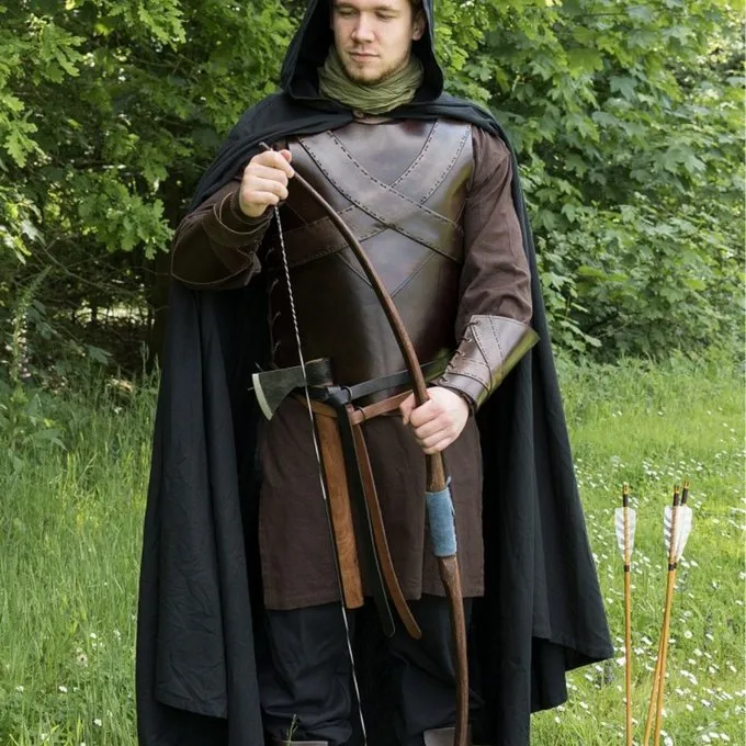 En letvægts læder kiste rustning med en X-formet dekoration på tværs af brystet, for krop beskyttelse under nyopførelse og larp kampe. Også perfekt til din Viking eller middelalder kostume og LARP og Cosplay fra serier som vikinger, Game of Thrones og Last Kingdom. Soldater og krigere iført beskyttelse læder brystet fra antikken til renæssancen. Denne rustning består af 2 mm tykt læder, har læder snørebånd på siden og læderremme på bagsiden, så du kan fastgøre det. De snørebånd og bælter gør det kan justeres i størrelse.