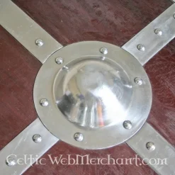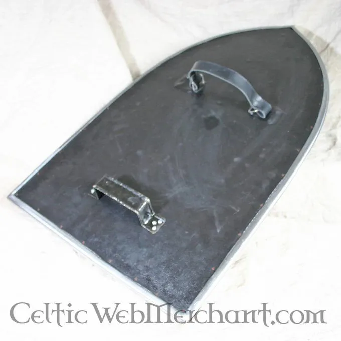 Denne Skjold bliver slået med stål for sikkerhed. Det har en højde på 64 cm, dens bredde er 49 cm, og det har en vægt på 2,2 kg.