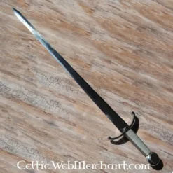 Middelalderligt enhåndssværd med bøjet korsværn. Sværdet er smedet af ét stykke metal for ekstra soliditet.