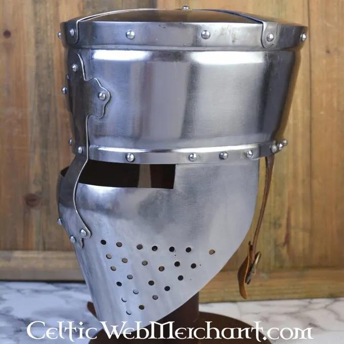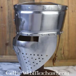 Denne Norman kalot er en kopi af middelalderlige originaler afbildet i håndskrifter og på vægmalerier. Den kalot eller spandehjelm var meget populær over hele Europa og i Det Hellige Land. Det viste sig at være en optimal beskyttelse til hovedet og ansigtet. Hjelme som denne blev båret af ridder ordrer såsom Tempelriddere. Senere denne hjelm udviklet sig til den store hjelm eller gryde hjelm, som også er beskyttet i nakken.