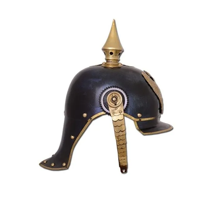 Denne pikkelhjelm er baseret på originaler, der blev foretaget fra 1905 og fremefter. Hjelmen er fremstillet af bronzed stål og har en messing hagerem.