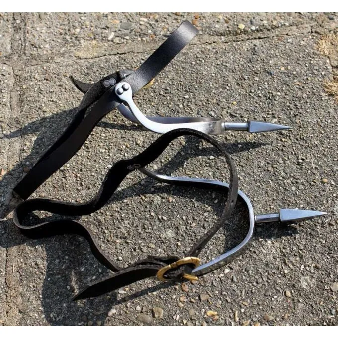 Disse sporer er kopier af Norman ridder sporer. Spurs har stropper til at fastgøre dem til sko. Spurs som disse var slidt indtil det 14. århundrede.