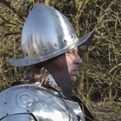 Materiale: kulstofstål / Stål tykkelse: 1,2 mm / Fuldt wearable / Justerbar i størrelse med stropper og spænder / Hjelm størrelse: max. 62 cm hovedomkreds (18 cm bred, 23 cm lang) / Maks. bryst omkreds: 110 cm / Vægt: 16,5 kg / Baseret på en historisk ori