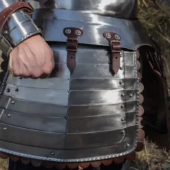 Denne ridder rustning af Deepeeka er fuldt bærbar til LARP og reenactment. Det er også en smuk dekoration stykke af historiske interiører. Den rustning er lavet af 1,2 mm stål og er baseret på historiske originaler af det 16. århundrede infanteri. Perfekt til en historisk kostume af en Pikeman, City Guard eller lejesoldat soldat. Du kan fastgøre rustning dele til hinanden med stropper. Stropperne er justerbare, så den fulde rustning kan også justeres i størrelse. Selen består af en hjelm (morion), herunder læder inlay og hagerem, todelt Gorget, bagplade, kyrads, tassets og arm sele med armbeskyttere i plade.