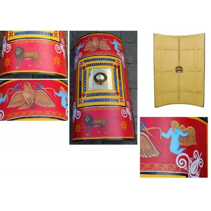 Denne scutum er en kopi af en sen romersk Skjold fra den 3. årh. E.Kr. Den oprindelige blev fundet i Dura Europos (Syrien).