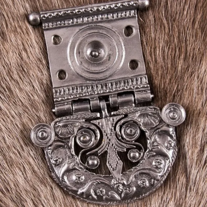 Denne smukt indrettede spænde er perfekt, hvis du ønsker at lave dine egne romerske bælter, eller til at dekorere romerske tøj. Spændet er baseret på en original fra 2. halvdel af det 1. århundrede e.Kr.. og blev udgravet i Serbien, nær Tekija som var en del af den romerske provins Pannonia. Oprindeligt var det på båndet af en romersk legionær: den cingulum eller balteus. Spændet er lavet af messing med et lag af tin, således at spænde ligner det er lavet af sølv. Spændet har forborede huller til fastgørelse til et bælte.