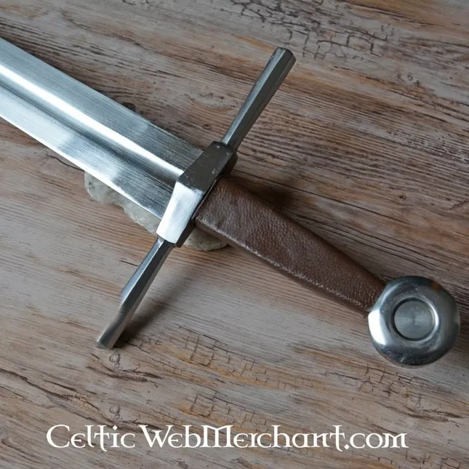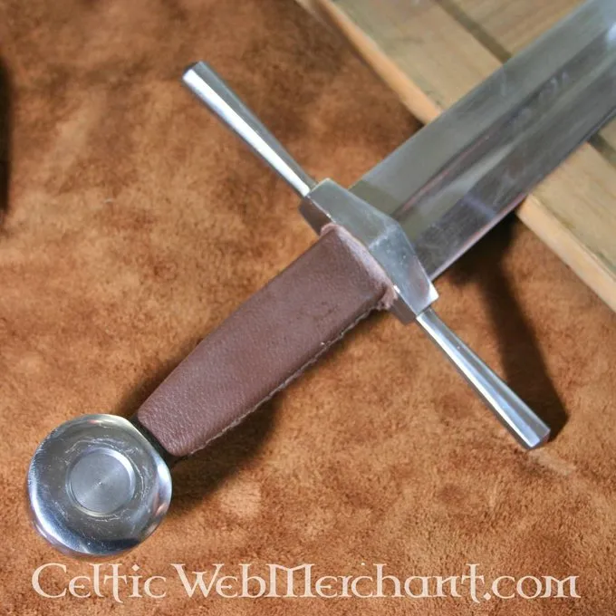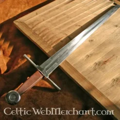Produkt detaljer: Længde: 44,5 cm / Klingelængde: 30 cm / Grebets Længde: 14,5 cm / Klingens Bredde iam parerstangen: 3,8 cm / Ståltype: DA45 kulstofstål hårdhed 48 HRC. / Kant: halvskarpt / Tangkonstruktion: konstruktion with fuldt tang / Knap: skruet /
