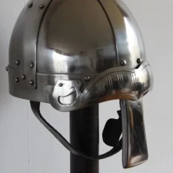 Hjelmen er kamp-klar, er iklædt læder på indersiden og har en læder speeches polstret hætte og en læder hagerem. Næsen stykke er iklædt læder så godt. Hjelmen er fremstillet af 2 mm tyk stål og egnet til en Hovedets omkreds op til 62 cm. Det vejer ca.. 2,7 kg.