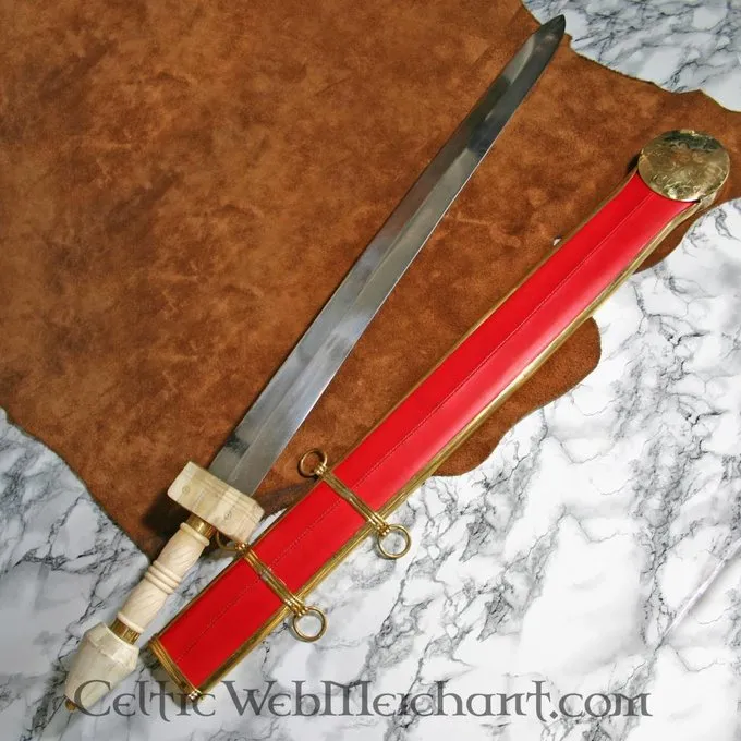 Dette sværd er 73 lang, med en klinge på 63 cm lang og 5,5 cm bred. Fæstet er lavet af ben og dekoreret med messing ornamenter. Den spatha vejer 1,4 kg og leveres med et træ skede, dækket med rødt læder. Det skede er lavet efter dele findes tilbage i Rheinland.