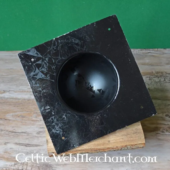 Denne firkantede umbo giver en ideel soliditet Skjold. Den måler 21,5 x 21,5 cm og er velegnet til både keltisk og romersk skjolder.