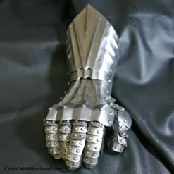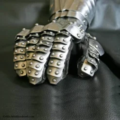 Disse stridshandsker er fremstillet af 1,3 mm tykt stål. Den stridshandsker er lavet i den gotiske stil, der var til stede i hele Europa indtil det 15. århundrede. Originalerne af stridshandsker blev foretaget i Augsburg.