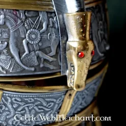 Denne hjelm er en realistisk kopi af den originale, ligesom den originale er indlagt med dekorerede jernplader, som saksiske knude motiver, krigere, ryttere og eventuelt en religiøs ritual er afbildet. Pladerne er fastgjort til hinanden med metalbånd. Ligesom Vendelhelm Sutton Hoo hjelmen har en kam i midten, det ender i en drage motiv, der er udsmykket med røde email.