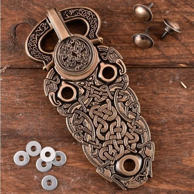 Dette er en meget detaljeret rekonstruktion fra den store guld Spænde fra Sutton Hoo. Den oprindelige blev begravet i det tidlige 7. århundrede med sin ejer i et skib-begravelse, sammen med flere artefakter, såsom den berømte Sutton Hoo hjelm. Det er i øjeblikket udstillet på British Museum i London. Spændet er lavet af messing. Den leveres med nitter og skiver til fastgørelse.