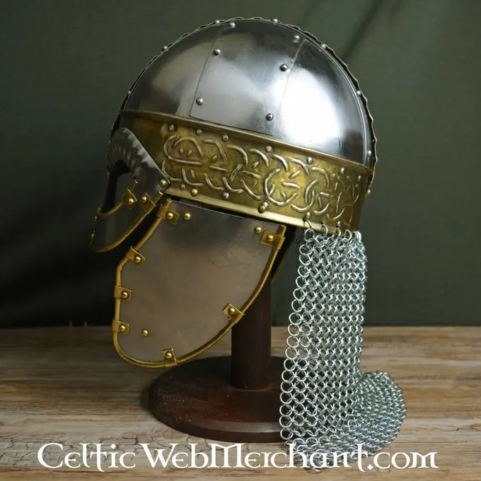 Denne tidlige middelalder hjelm er baseret på originaler, der blev båret af vikingerne og angelsakserne. Denne hjelm er lavet af 1,2 mm tyk stål og bliver slået med messing. Beskyttelsen chainmail hals er lavet af gathered Runde ringe.