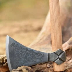 Denne Viking AX er en kopi af et originalt 10. århundrede udgravet i Mammen i Danmark. I dag er det en del af samlingen af National Museet i København. Denne økse blev fundet i en mands grav, sandsynligvis af en vikinghøvding eller en meget rig viking. Denne Viking AX er dekoreret i Mammen-stilen. Denne vikingekunststil skylder sit navn til denne økse! I originalen blev graveringerne indlagt med sølv.