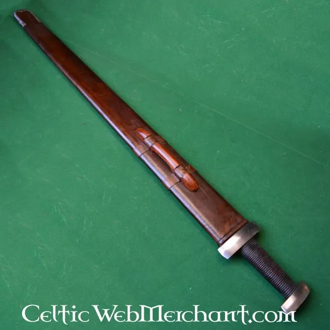 Detaljer / Materiale: EN45 fjederstålhårdhed 48-50 HRC / Total længde: 93 cm / Bladlængde: 78 cm / Bladbredde: 5,8 cm / Pommel: Nitter / Konstruktion: Fuld tang / Blunt 3 mm / Vægt: 1311 gram / Baseret på historisk original /