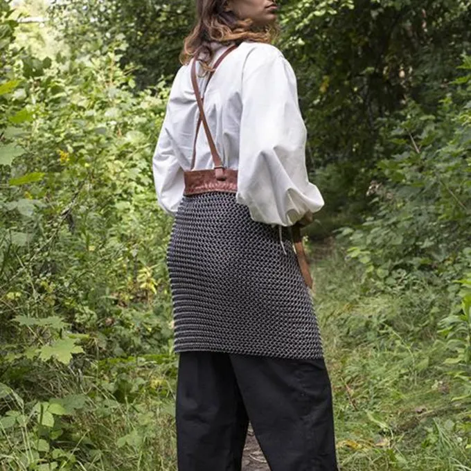Denne nederdel er ideel til at bære under en kyrads. Den læderbælte giver dig mulighed for at fastgøre det omkring taljen. To læder skulderstropper gør det behageligt at have på. Den chainmail skørt er fremstillet af butted mildsteel ringe i et 4: 1 konstruktion.