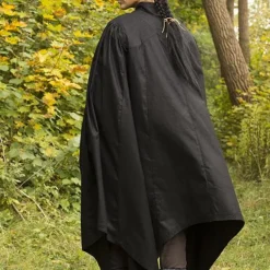Denne kappe når til omkring knæene og kan fastgøres om halsen med en lædersnor. Kappen har en åben front og efterlader dine hænder fri i løbet af kampe. På bagsiden kappen har en smuk symmetrisk effekt: i midten det er kortere end på siderne. Kraven på toppen med sin læder dekoration er også et blikfang. En stor komfortabel kappe for alle dine larp og Cosplay tegn.