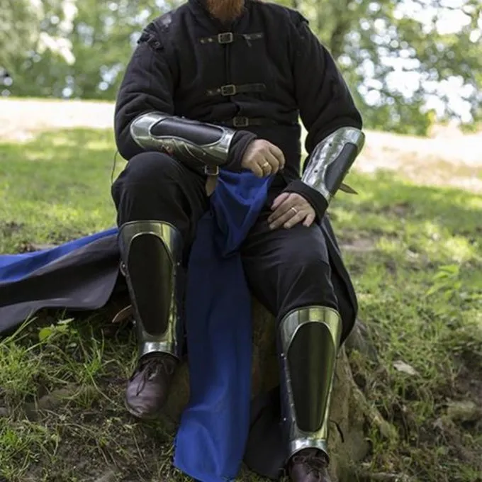Materiale: blødt stål / / Levering inkluderer: pair armbeskyttere i plade og pair grever / / Stål tykkelse: 1 mm / / Finish: patinerede & poleret / / En størrelse passer alle /