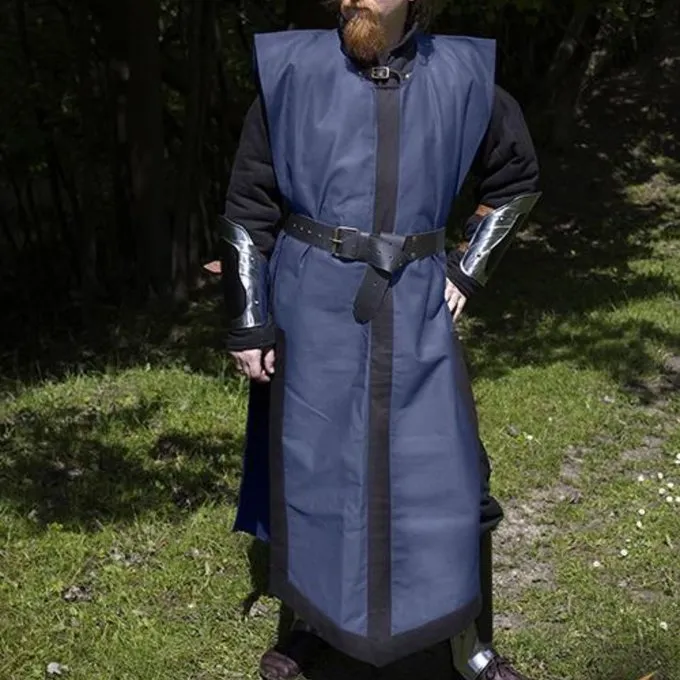Levering inkluderer: armbeskyttere i plade, ben rustning, surcoat, bælte