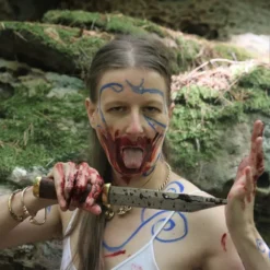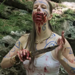 Du kan bruge denne kunstige blod at gøre makeup og kostume effekter. Væsken er fremstillet af majsstivelse, farvning og gel. Lav en skræmmende sår til Halloween eller Walking Dead cosplay, eller en skræmmende afstivning LARP. Eller bruge det til reenactment at farve en bandage rød eller dit tøj, så du synes at være en tilskadekommen i kamp. Mulighederne er uendelige! Påfør gelen til tøj eller en overflade. Du kan anvende det direkte på huden med en svamp eller børste for den bedste effekt. Du kan fjerne det fra din hud med sæbe og varmt vand. Denne store flaske er perfekt til LARP og reenactment grupper.